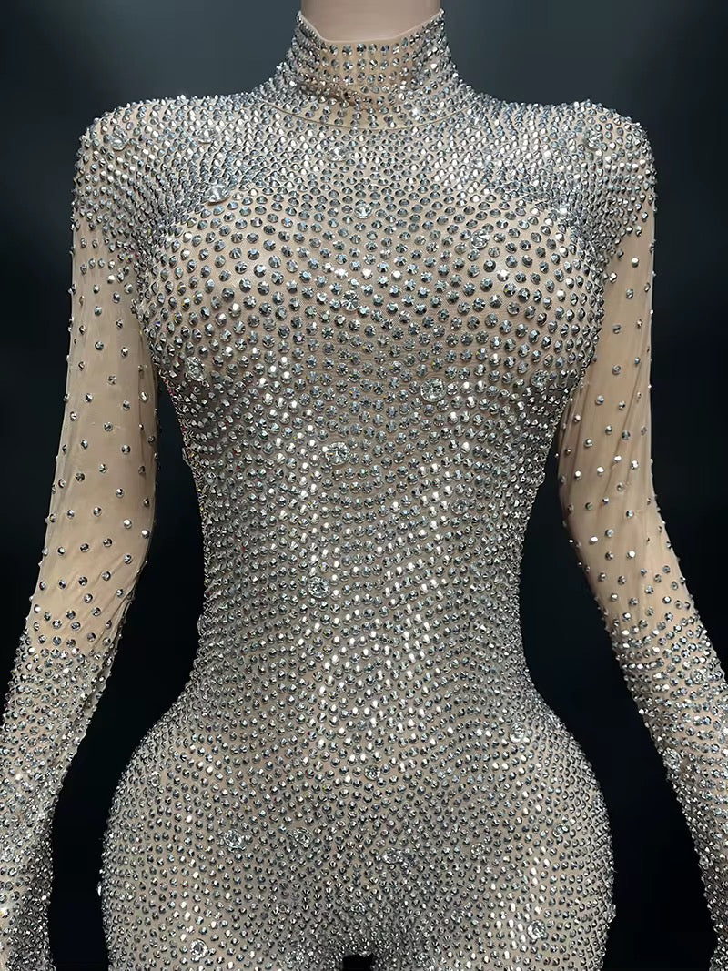 This elegant, gorgeous, and beautiful item is made to fit perfectly. This jumpsuit is pure luxury,it is designed with quality luxurious rhinestones every piece of stone is perfectly handstitched and designed to give the wearer a luxurious and glamorous appearance.