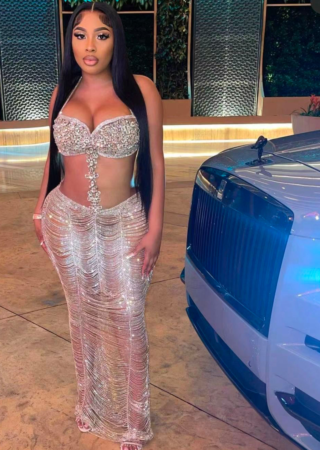 This elegant, gorgeous, and beautiful item is made to fit perfectly. This is pure luxury,it is designed with quality luxurious rhinestones every piece of stone is perfectly handstitched and designed to give the wearer a luxurious and glamorous appearance.
