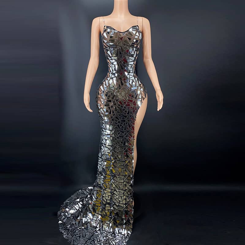 Dress boasts a luxurious and glamorous look with its glittering details. Very comfortable and flirty to wear.