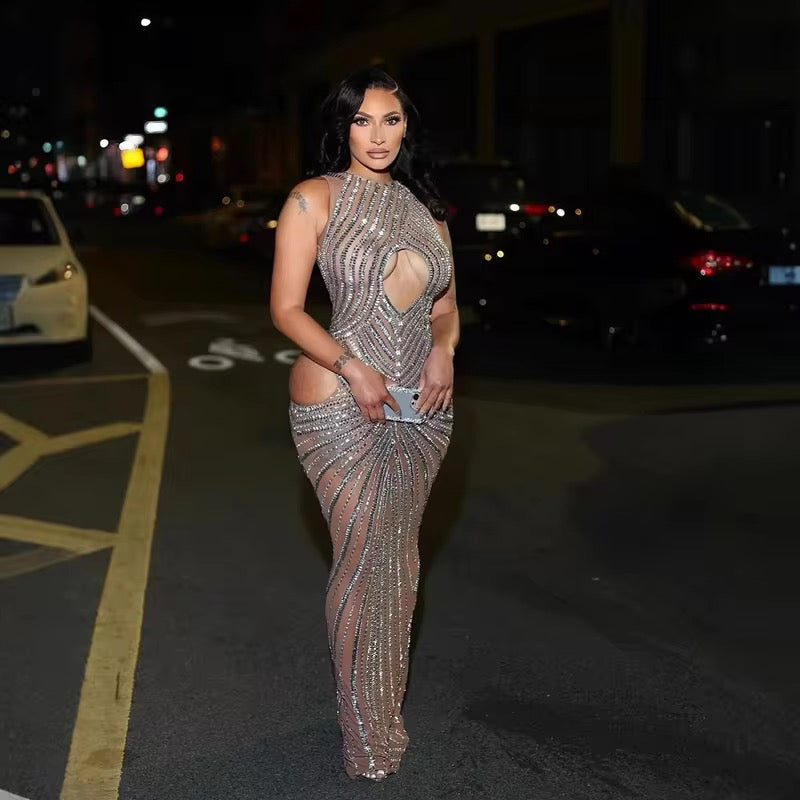 Dress boasts a luxurious and glamorous look with its glittering details. Very comfortable and flirty to wear.