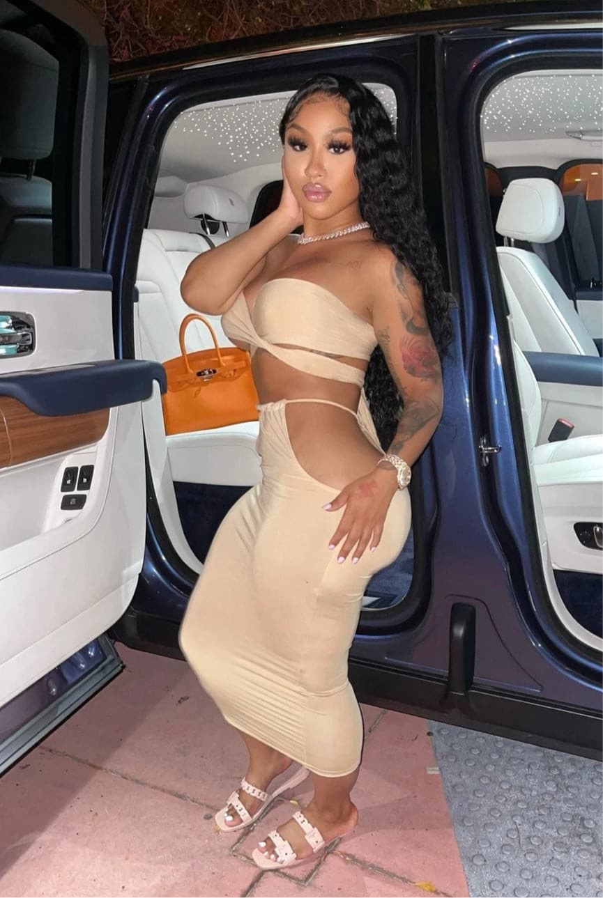 Straight out of your dreams this sexy set is here to mesmerize you with its beauty. A criss-cross halter bikini paired with a long pencil skirt with cutouts on the sides is what this alluring set is about. Ideal for a date night, this hot set deserves your attention at all costs.